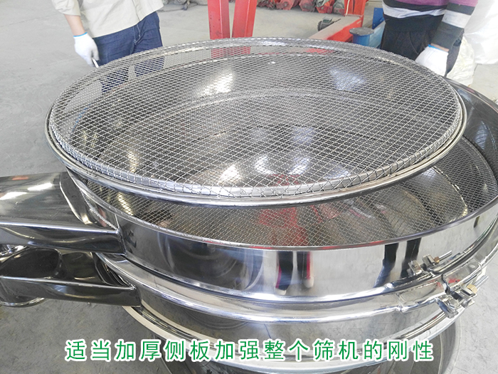 解决方法:可以适当加厚侧板,或者对振动电机附近的侧板增加附板以加强整个筛机的刚性。