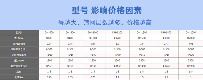 葵花籽不锈钢妖精视频网站入口型号有DH400型、DH600型、DH800型、DH1000型、DH1200型、DH1500型、DH1800型、DH2000型。不同大小的型号所配备筛网层数也不同(可达到五层),型号越大筛网层数越多价格越高。